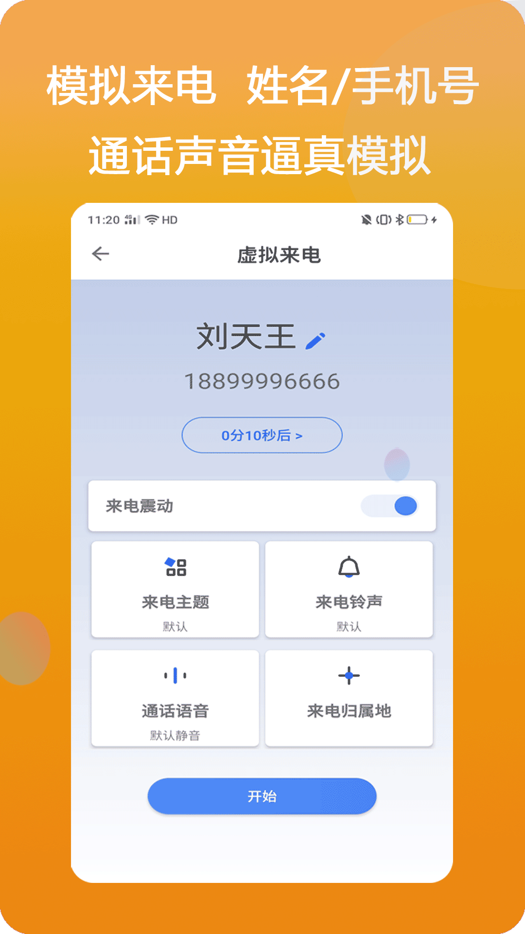 虛擬任意人、時間、歸屬地、號碼、通話聲音打來的電話;還能虛擬來短信發短信等短信聊天哦